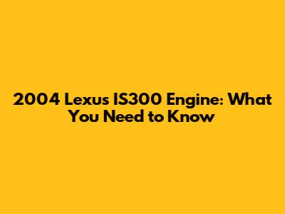 2004 Lexus IS300 Engine: What You Need To Know
