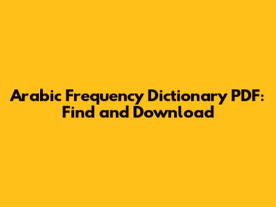 Arabic Frequency Dictionary PDF: Find And Download