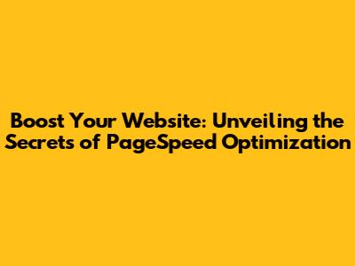 Boost Your Website: Unveiling The Secrets Of PageSpeed Optimization