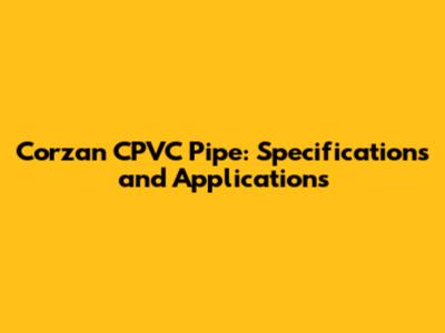 Corzan CPVC Pipe: Specifications And Applications