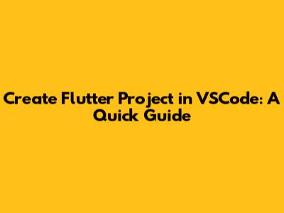 Create Flutter Project In VSCode: A Quick Guide