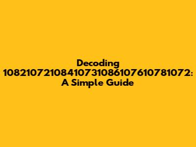 \nEver stumbled upon a mysterious string of numbers and wondered what it could possibly mean? Today, we're diving deep into decoding the enigmatic "10821072108410731086107610781072." It might look like gibberish at first glance, but trust me, there's a method to this madness. This guide will break down the process step-by-step, making it super easy for anyone, even if you're not a tech whiz, to understand. We'll explore possible interpretations, discuss common decoding techniques, and even look at some practical applications where you might encounter such codes. Get ready to unlock the secrets hidden within these digits!