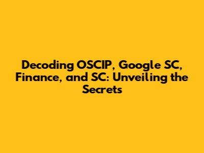 Hey everyone! Ever stumble upon acronyms and buzzwords that make your head spin? Well, today, we're diving deep into some of those, specifically focusing on OSCIP, Google SC, Finance, and SC. We're going to break down what these terms mean, how they relate, and why you should care. Buckle up, because we're about to embark on a journey through the often-complex world of finance and technology! This guide will provide you with a comprehensive understanding of each term, highlighting their significance and shedding light on their interconnectedness. Let's get started, guys!