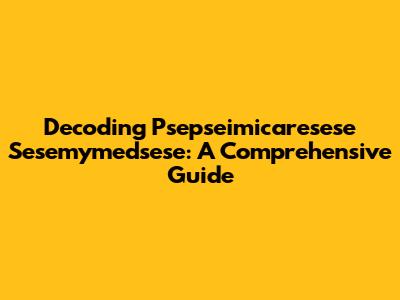 Decoding Psepseimicaresese Sesemymedsese: A Comprehensive Guide