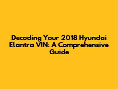 Decoding Your 2018 Hyundai Elantra VIN: A Comprehensive Guide