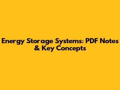 Energy Storage Systems: PDF Notes & Key Concepts