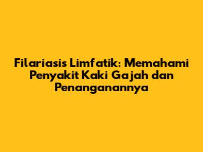 Filariasis limfatik, atau yang lebih dikenal sebagai penyakit kaki gajah, adalah penyakit parasit yang disebabkan oleh cacing filaria yang hidup di sistem limfatik manusia. Penyakit ini ditularkan melalui gigitan nyamuk yang terinfeksi. Guys, mari kita selami lebih dalam tentang penyakit ini, mulai dari penyebabnya, gejala-gejalanya, hingga cara pengobatan dan pencegahan yang efektif. Memahami filariasis limfatik sangat penting untuk kita semua, terutama karena penyakit ini dapat menyebabkan kecacatan permanen dan penderitaan yang berkepanjangan. Jadi, simak terus ya!