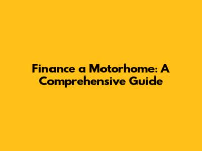 Finance A Motorhome: A Comprehensive Guide