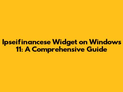 Ipseifinancese Widget On Windows 11: A Comprehensive Guide