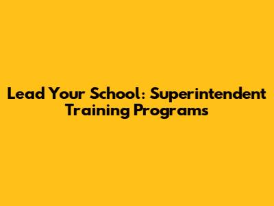 Lead Your School: Superintendent Training Programs