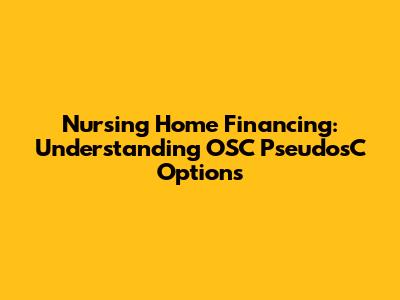Nursing Home Financing: Understanding OSC PseudosC Options