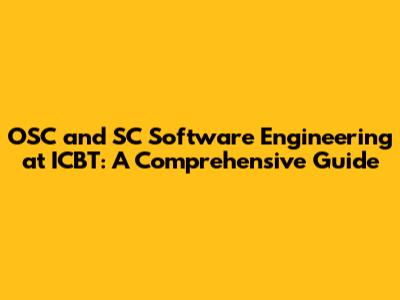 OSC And SC Software Engineering At ICBT: A Comprehensive Guide