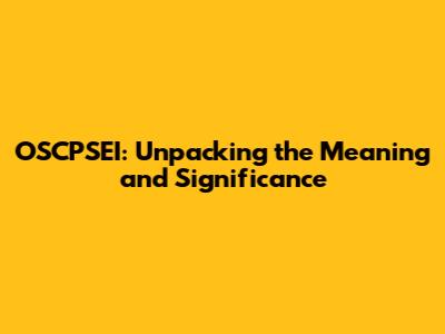 OSCPSEI Explained: Meaning And Implications