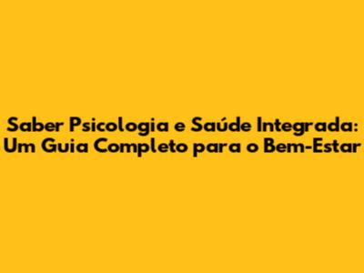 Psicologia E Saúde Integrada: Um Guia Completo Para O Bem-Estar