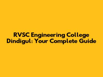 RVSC Engineering College Dindigul: Your Complete Guide