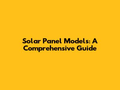 Solar Panel Models: A Comprehensive Guide