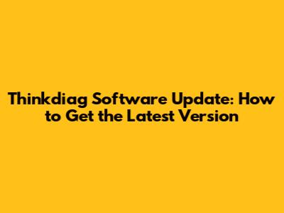 Thinkdiag Software Update: How To Get The Latest Version