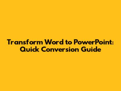 Transform Word To PowerPoint: Quick Conversion Guide