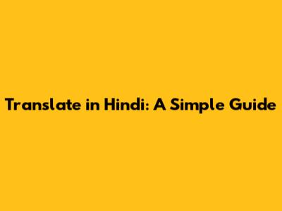 Translate In Hindi: A Simple Guide