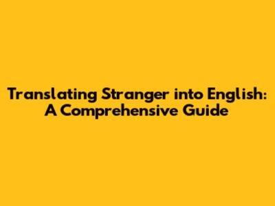 Translating 'Stranger' Into English: A Comprehensive Guide