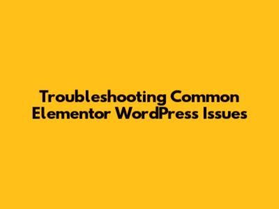 Troubleshooting Common Elementor WordPress Issues