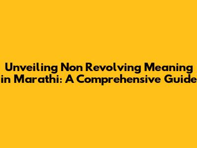 Unveiling 'Non Revolving' Meaning In Marathi: A Comprehensive Guide